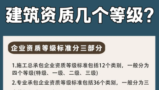 • 想知道一家建筑工程公司的實力如何,最為直觀的方式就是查看其資質證書等級,建筑工程資質可以劃分為特級、一級、二級和三級......