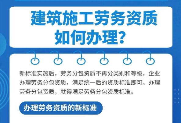 • 隨著建筑施工勞務資質正式由審批制改為備案制,大大縮短業務流程,企業申請施工勞務資質可以做到當天就能拿到資質證書......